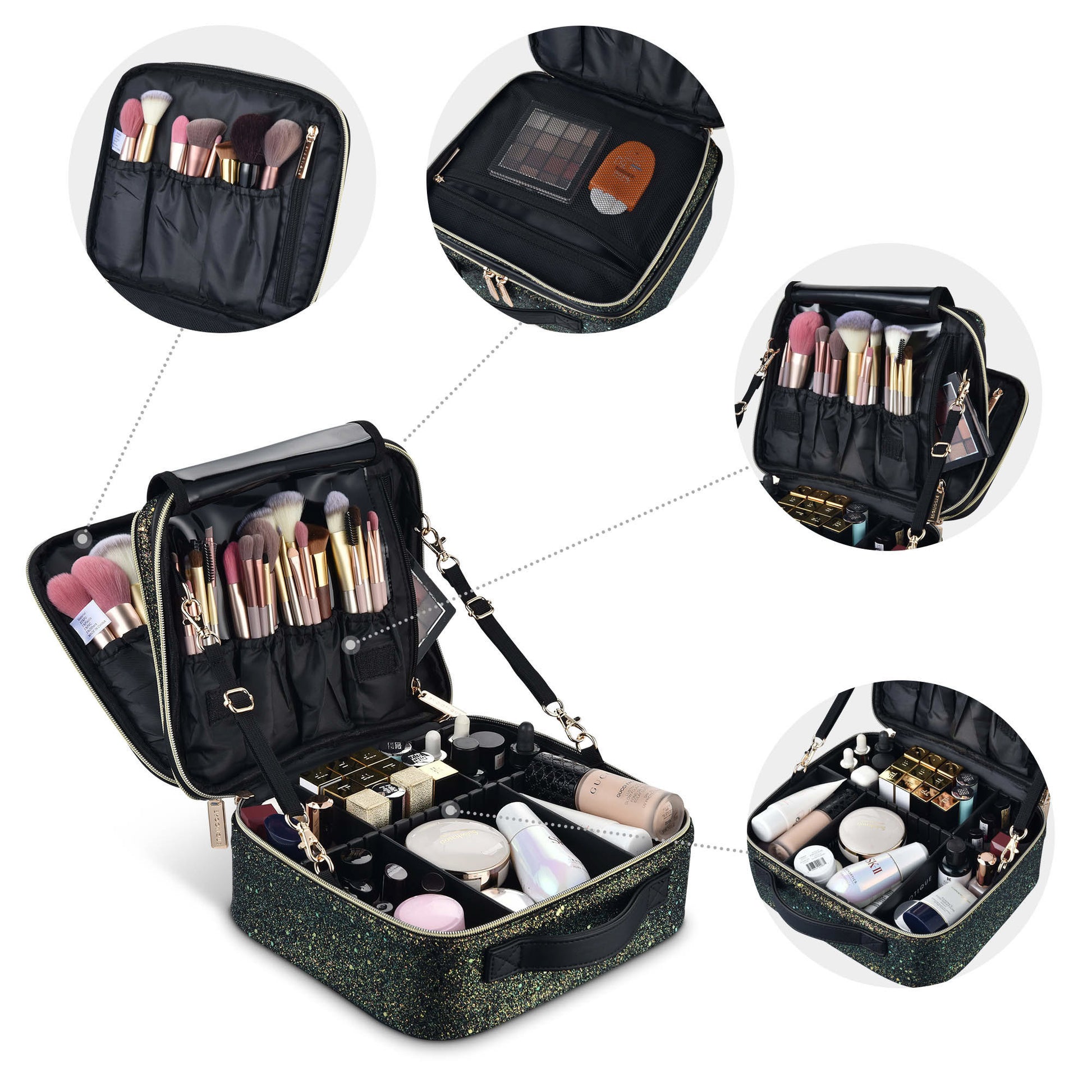 - Eye-catching - This 11" Byootique Portable Cosmetic Bag features a gradient black color with a gold glitter to deliver an understated; mysterious; youthful and eye-catching appearance which helps you express your individual personality