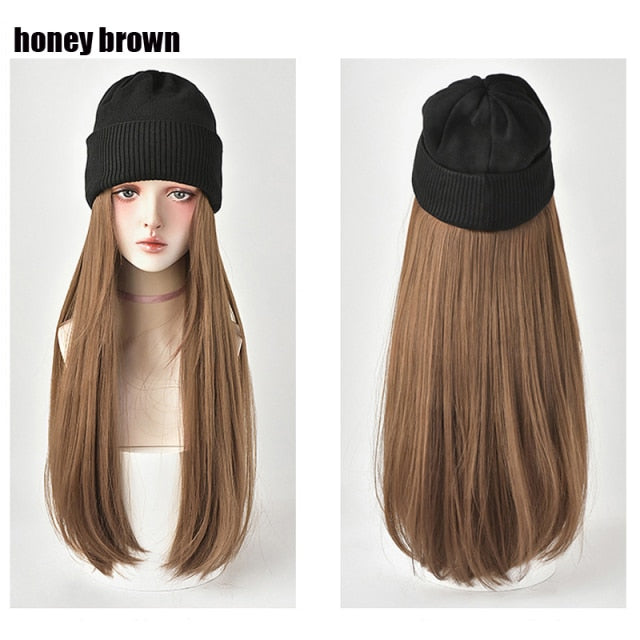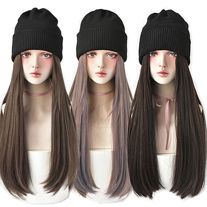 Iterm Name: Long Straight Hat Wig Synthetic Hair Wigs
