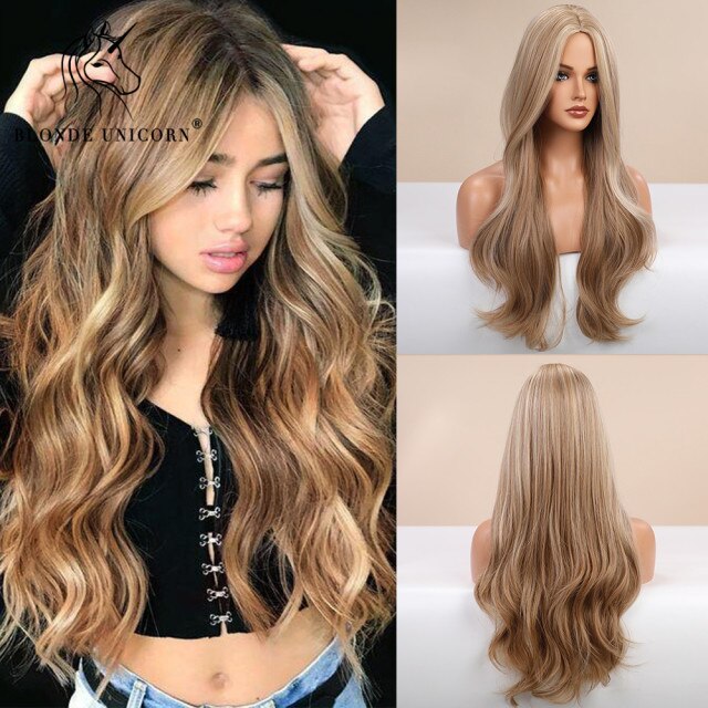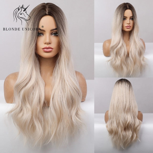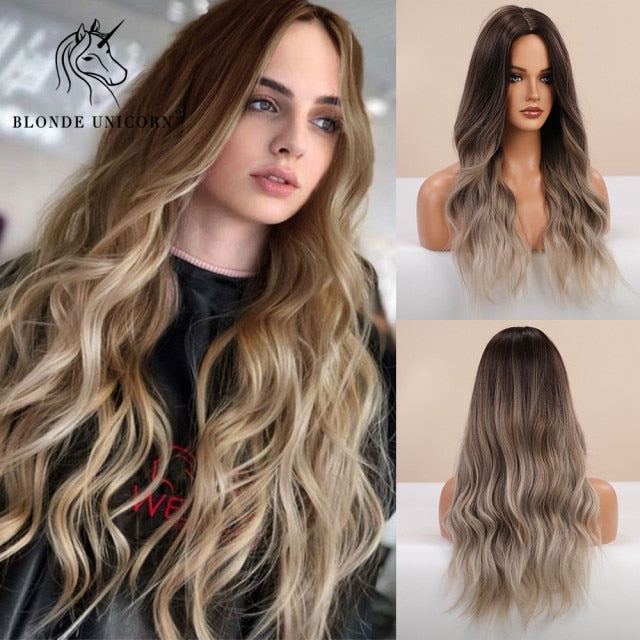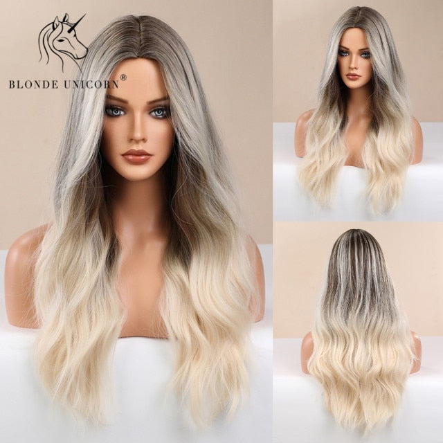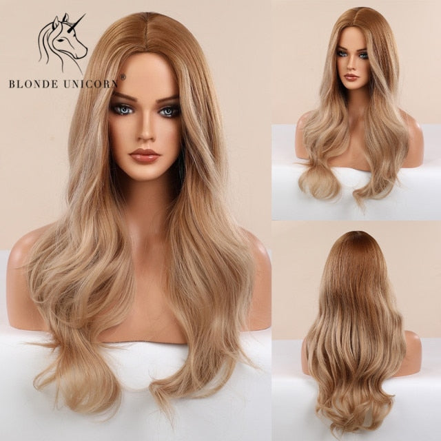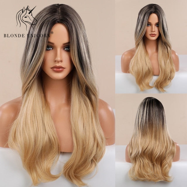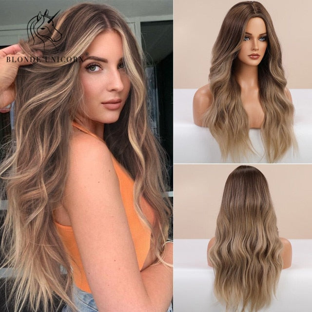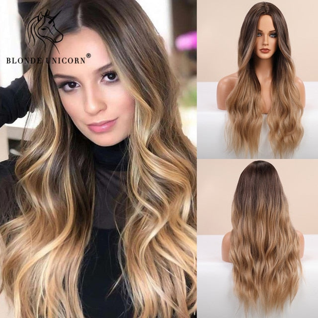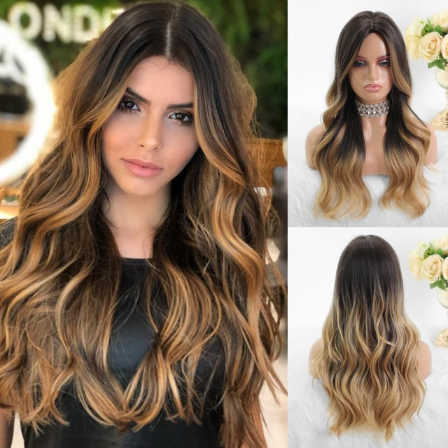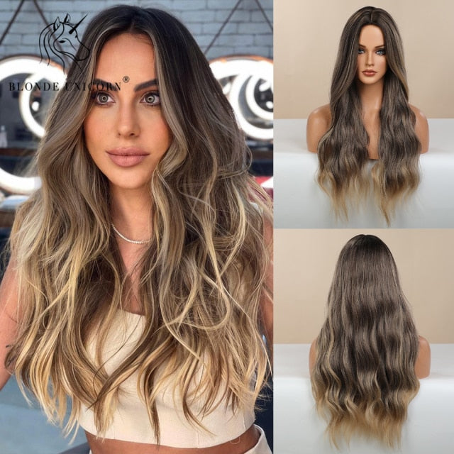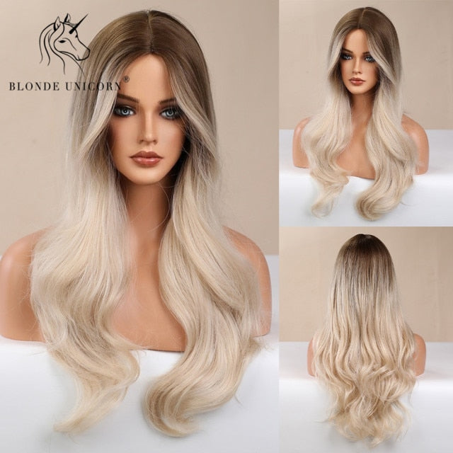 Feature 3: Brown to Blonde Ombre Wigs with Middle Part