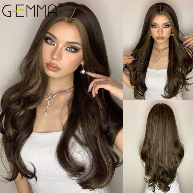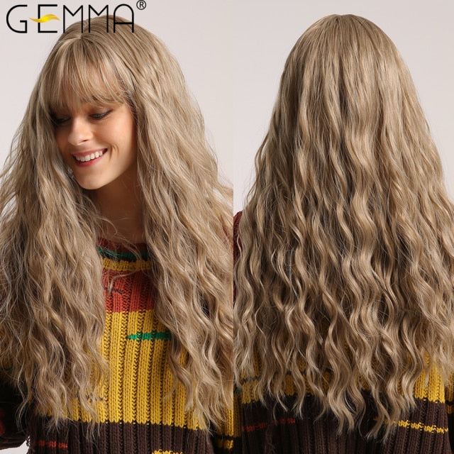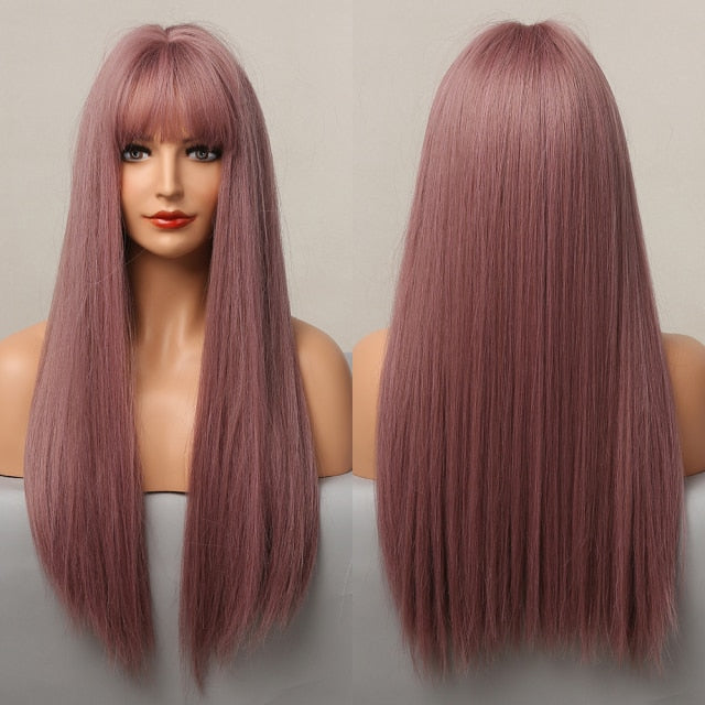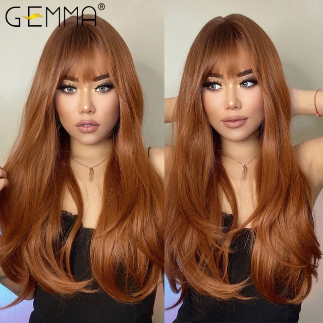 Red Brown Copper Ginger Long Straight Synthetic Wigs for Women with Bangs Heat Resistant