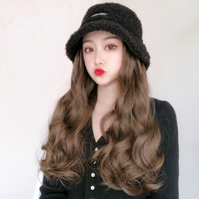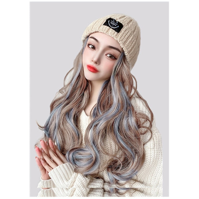 Knitted Curly Hair Synthetic Hat Wig Female Warm Autumn and Winter Models