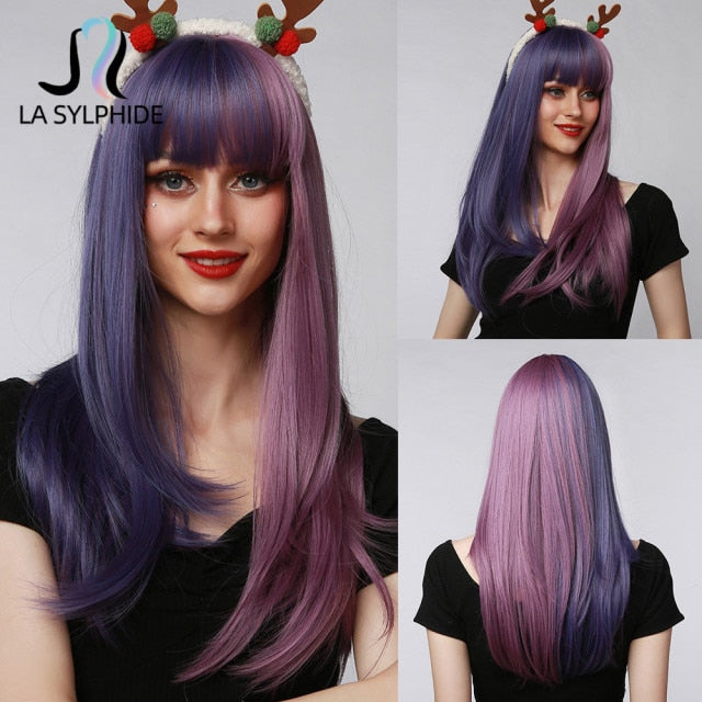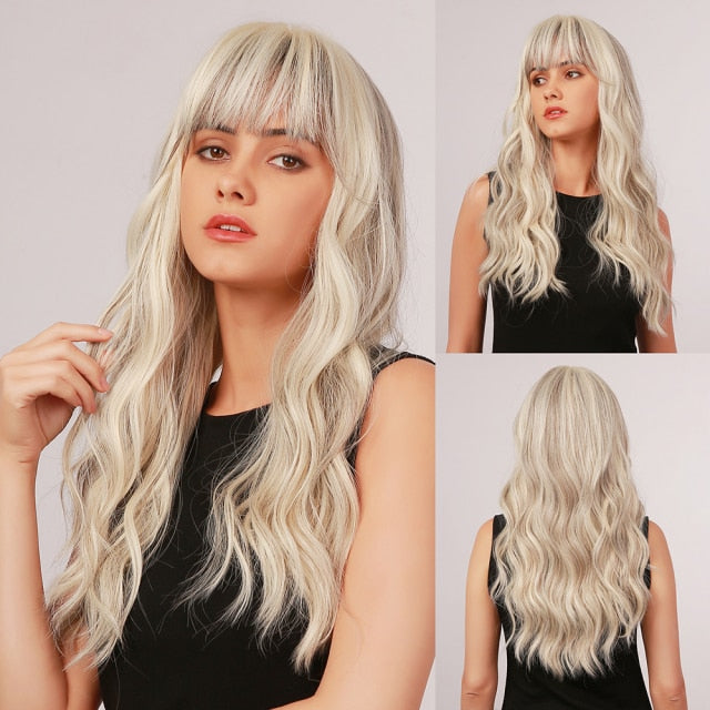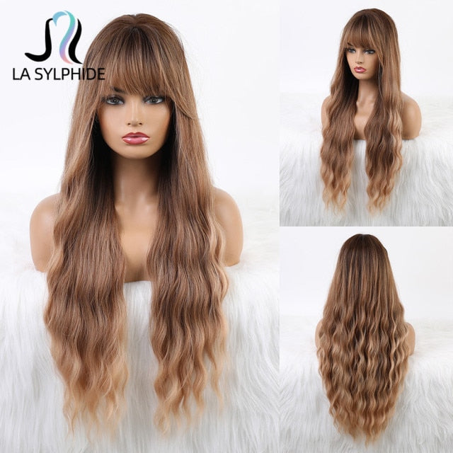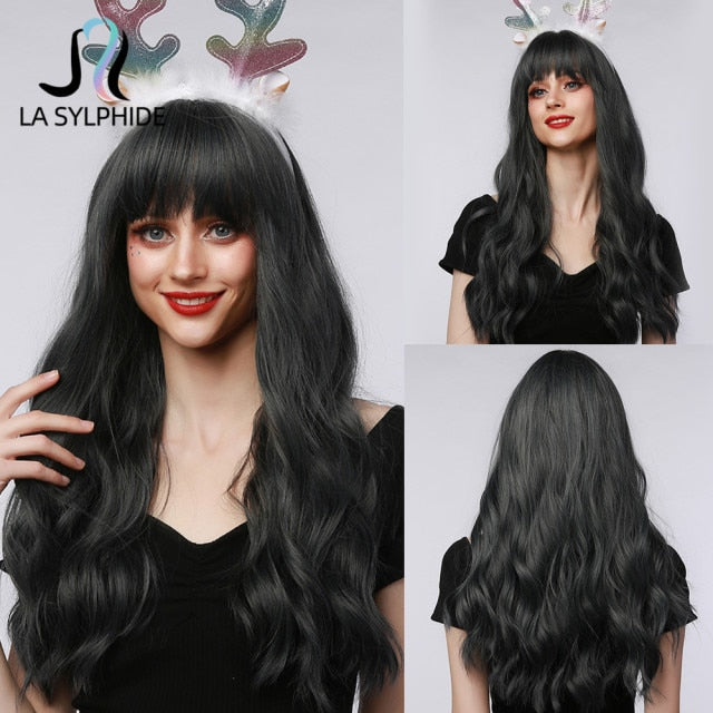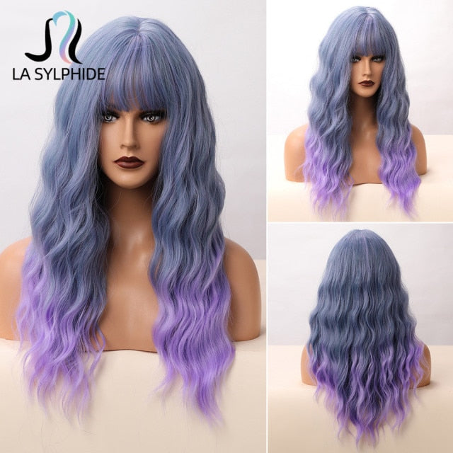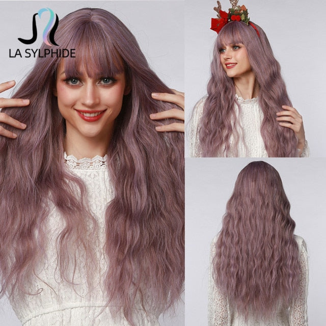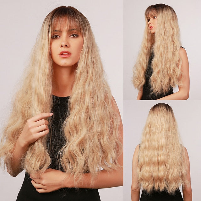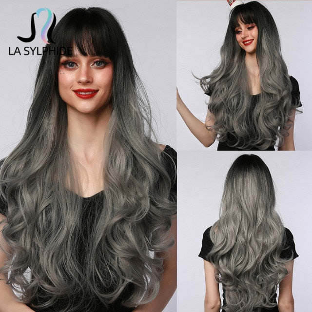 Long Wave Root Black Ombre Pink Synthetic Hair Wig - Heat Resistant
