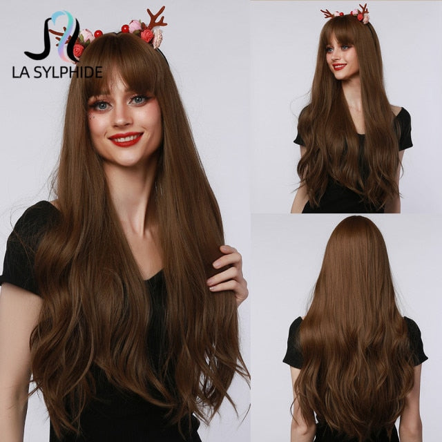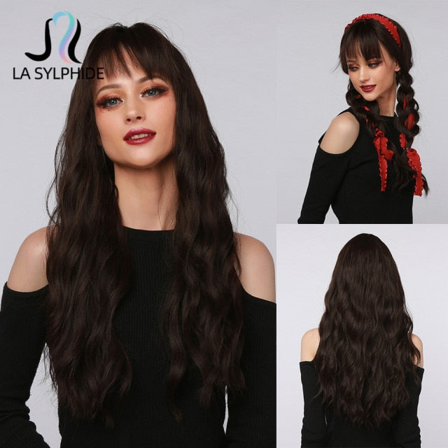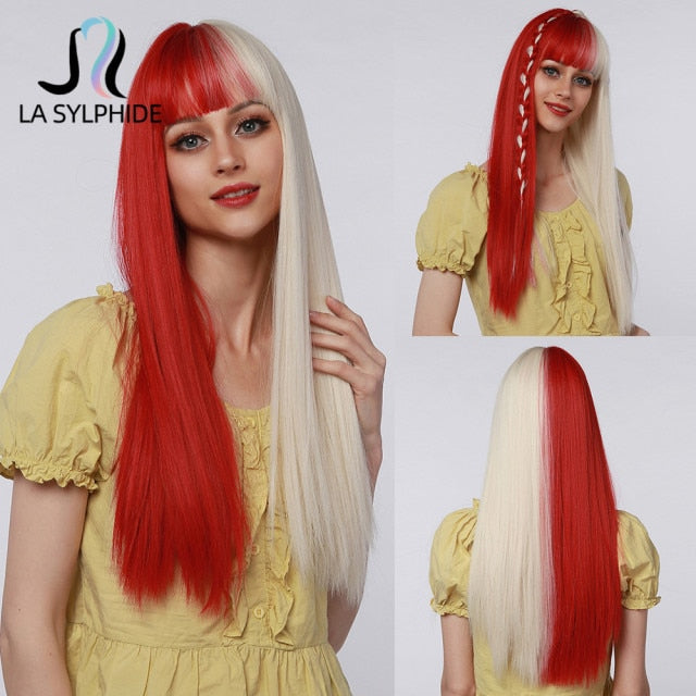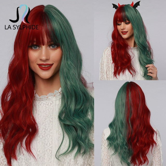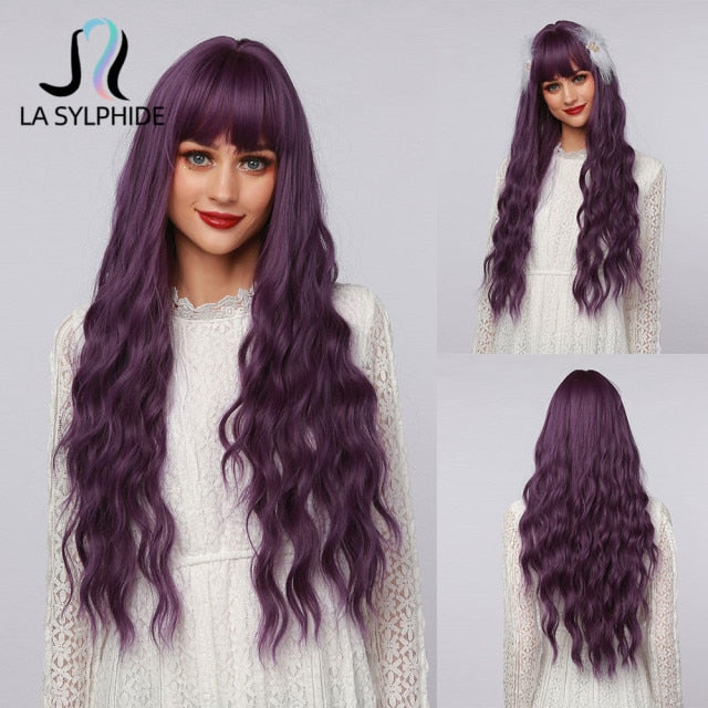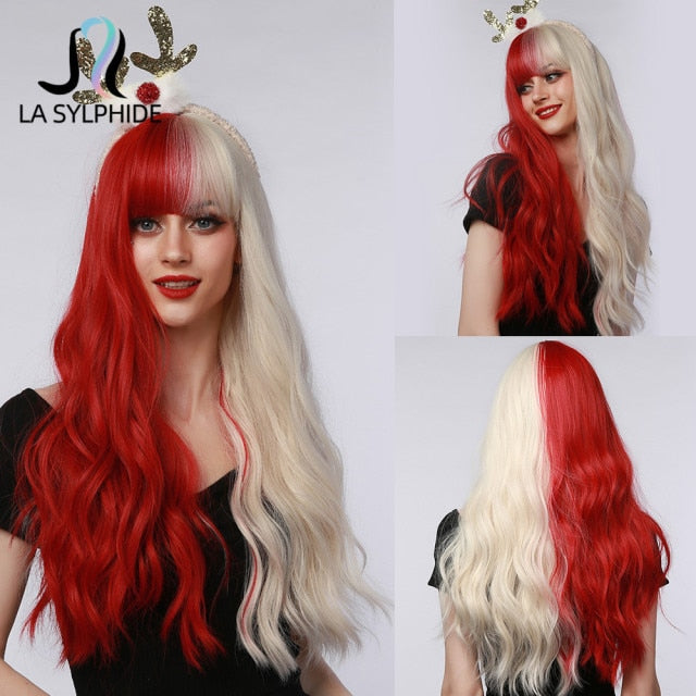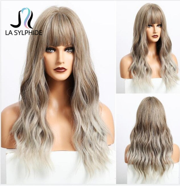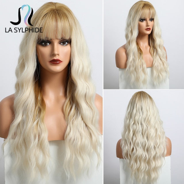 Long Wave Root Black Ombre Pink Synthetic Hair Wig - Heat Resistant