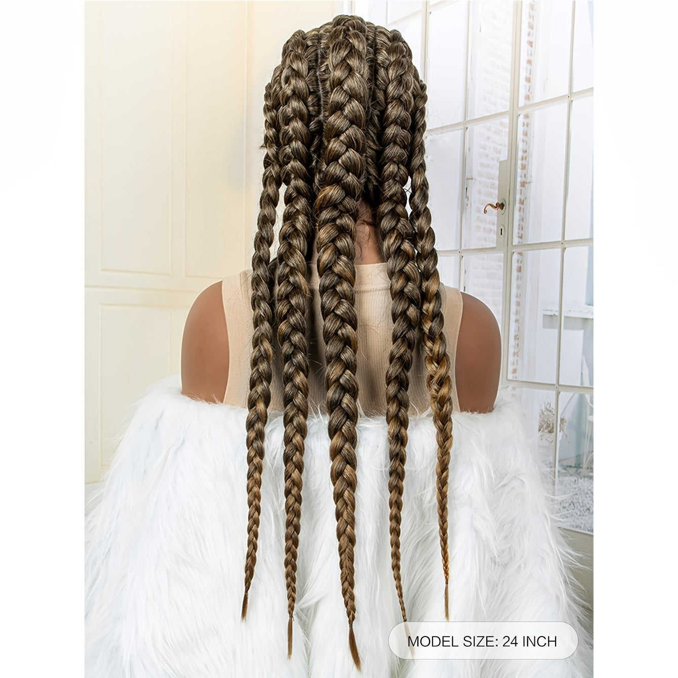 Lace Front Long Braided Synthetic Wig; 5x Braided Wigs Natural Hairline Box Braided Wigs For Women